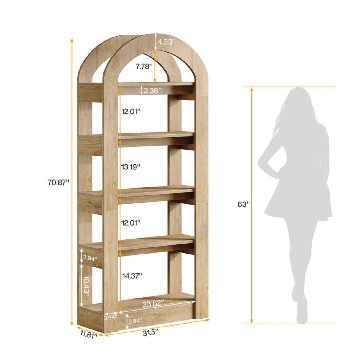 This 70.9″ tall arched bookshelf offers a practical and stylish solution to your storage needs. It is designed with five spacious open shelves, perfect for displaying books, photo albums, potted plants and other items for everyday use.